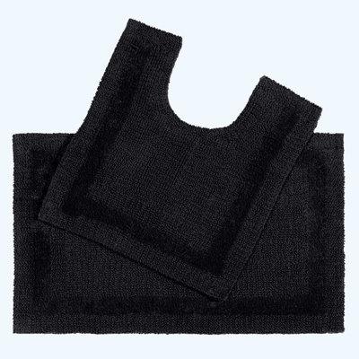 Homescapes Luxury Two Piece Cotton Black Bath Mat Set DIY at B&Q